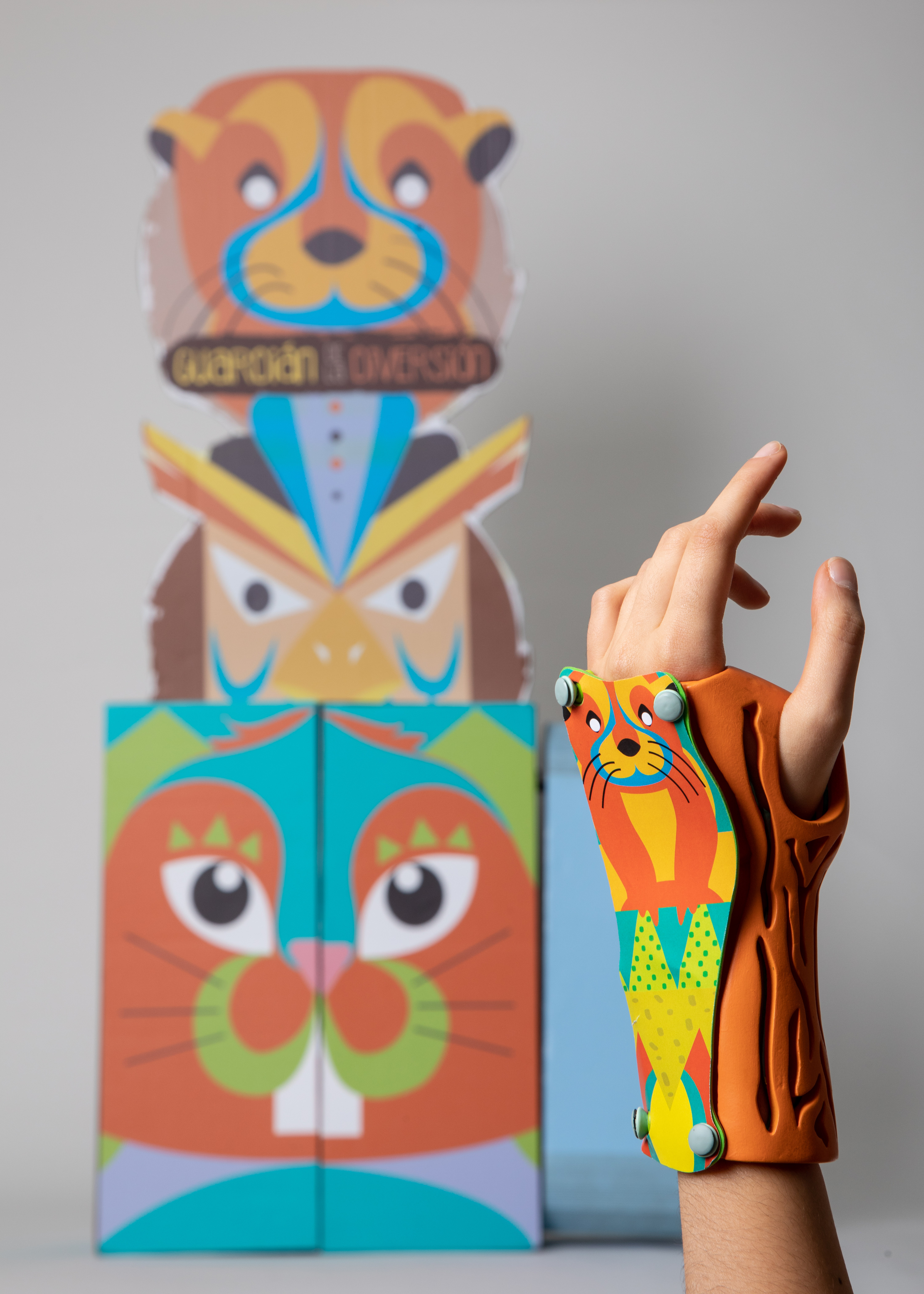 Tóte-mi es una férula para inmovilizar la fractura del cartílago del crecimiento en niños de 5 a 10 años. Busca crear un vínculo emocional con el usuario velando por su bienestar integral mediante el poder del tótem con el que se identifique. Proyecto académico realizado en Núcleo 6 de Diseño Industrial.