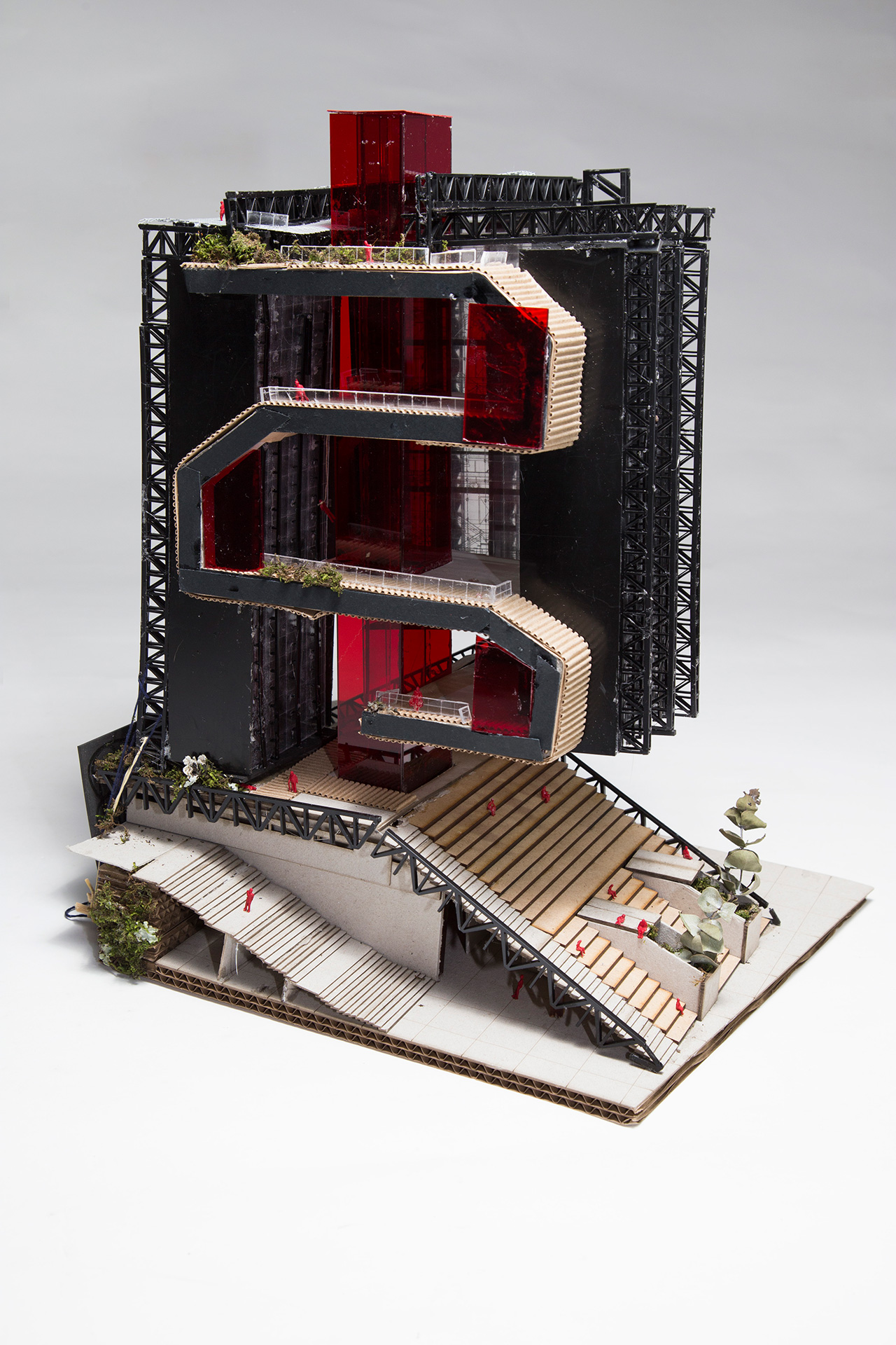 Barrios en 9 estados basados en las artes mayores, trabajados en una envolvente total que cerca y soporta las tipologías. La estructura es una mega columna con tensores paralelos (vigas en Celoria). Proyecto académico de Taller Vivienda Colectiva - Facultad de Arquitectura