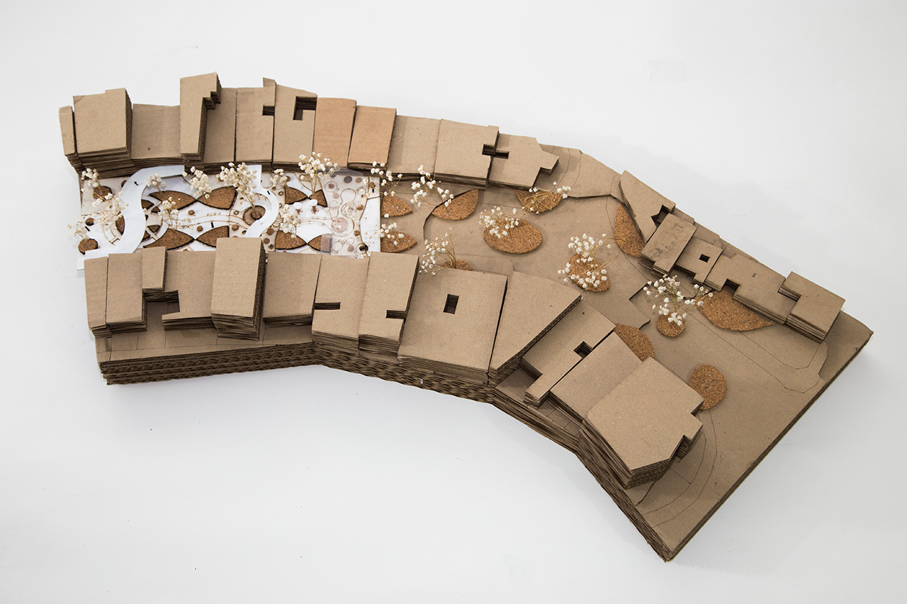 El proyecto pretende, por medio de conexiones físicas y visuales, establecer relaciones entre las tipologías existentes en el barrio y las fracturas generadas por sus problemáticas. La cinta barrial busca generar una relación directa y estrecha entre hombre-naturaleza y la integración de barrio-comercio existente. Proyecto académico de Taller 4 - Espacio Público de la Facultad de Arquitectura.