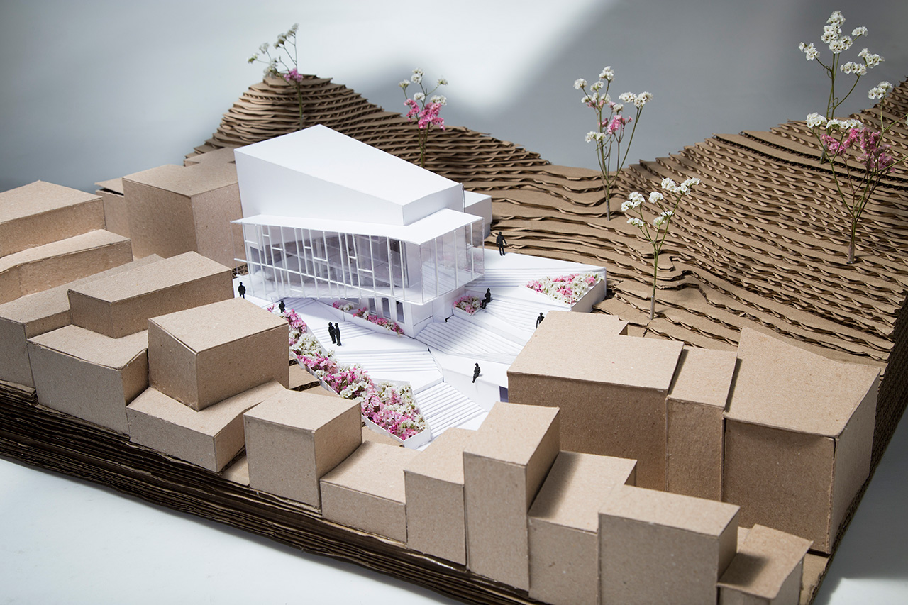 A través de la topografía, la idea es realizar un terraceo que asciende hacia el cerro El Volador, además, incluir una relación con la vía y el espacio público, convirtiéndose a nivel y dando un uso a cada una de estas. Proyecto académico de Taller de Proyectos 3 de la Facultad de Arquitectura.